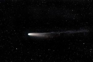 The trailed stars are caused from stacking frames on the comet's movement, rather than the stars' movement. This way keeps the comet still in the image, while ignoring the movement of the stars.